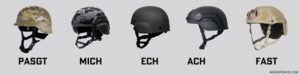 - MICH/ACH – a introduit un rembourrage modulaire, des supports pour lunettes de vision nocturne et une réduction du poids. Est devenu la base de nombreuses conceptions modernes.